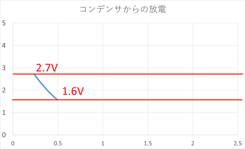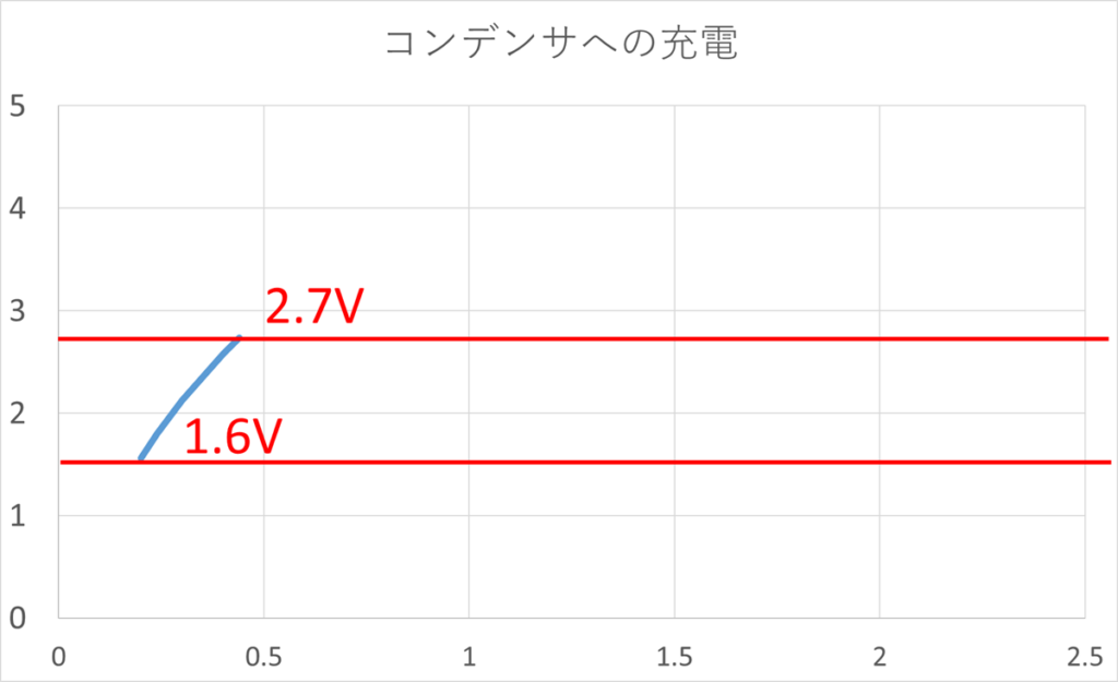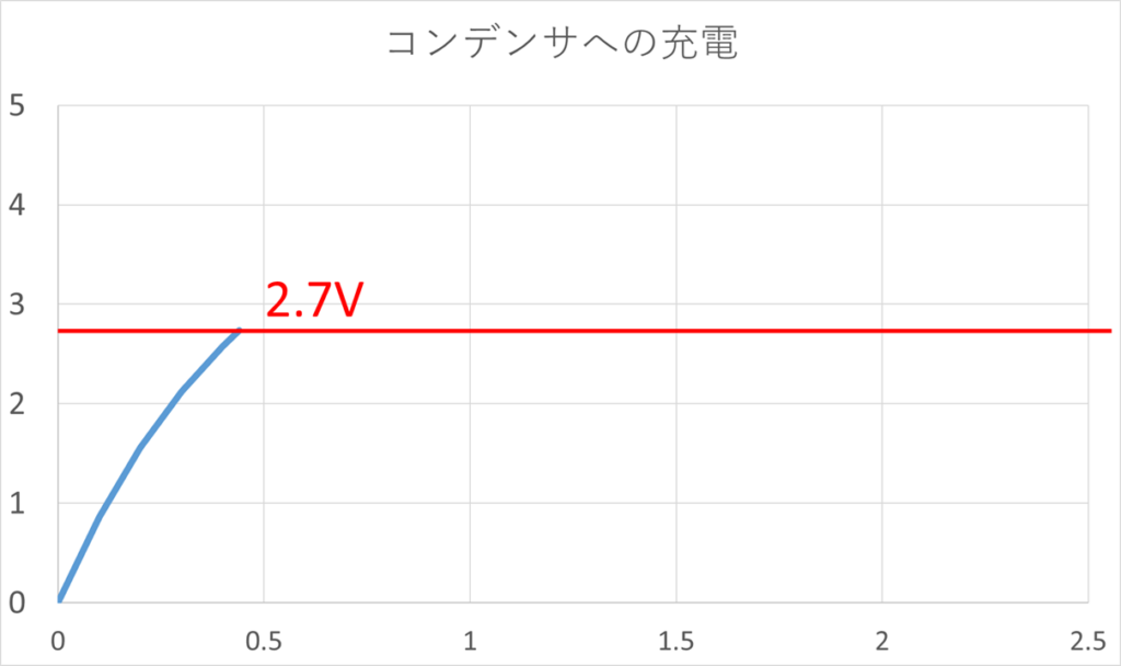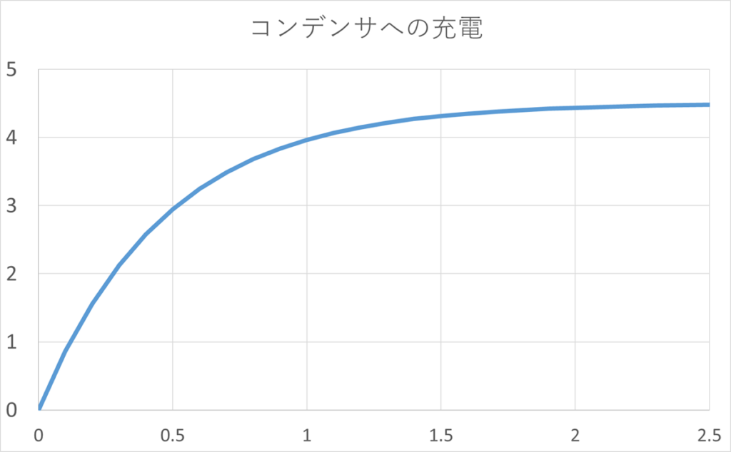 ここで、コンデンサの電圧が時間をかけて変化することが鍵になる。